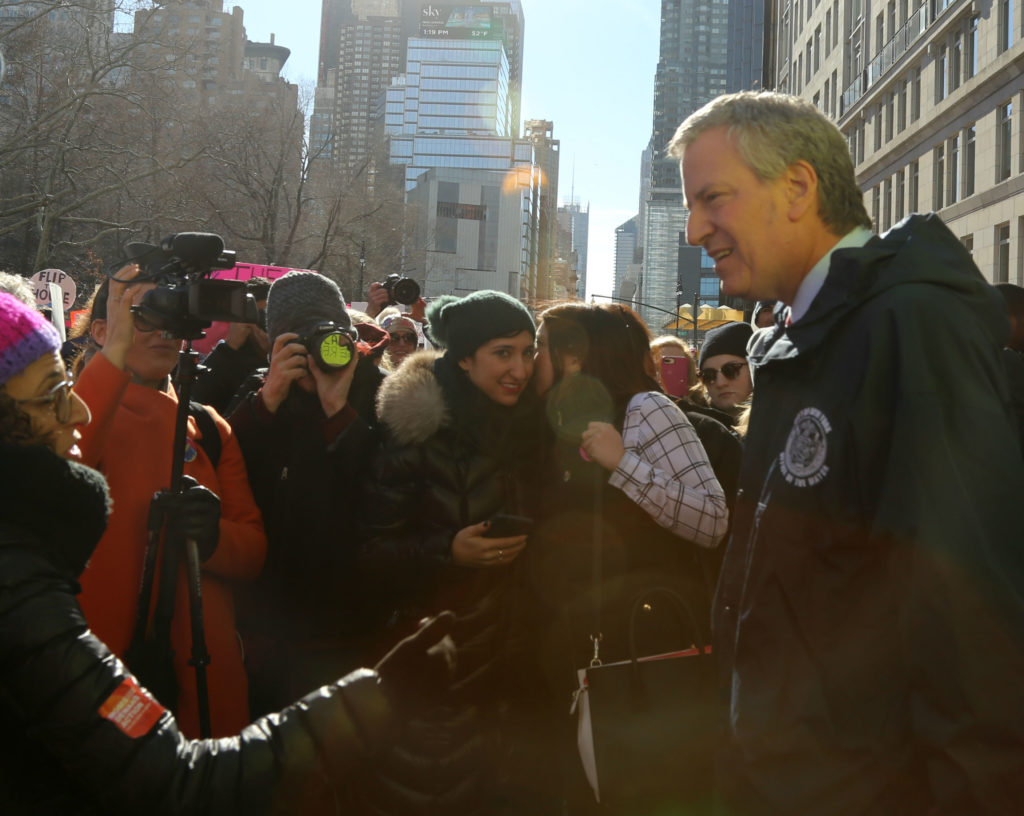 New York City Mayor Bill de Blasio speaks with attendees at the 2018 Women’s March in New York City on Jan. 20, 2018. Photo by Pavni Mittal